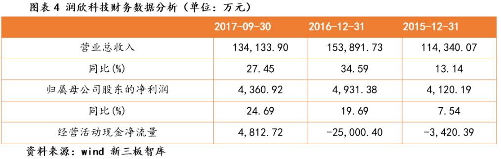2015年、2016年、2017年前三季度,公司實現(xiàn)營收分別為11.43億元、15.39億元、13.41億元,同比分別增長13.14%、34.59%、27.45%;對應(yīng)凈利潤為4120.19萬元、4931.38萬元、4360.92萬元,同比增長分別為7.54%、19.69%、24.69%。