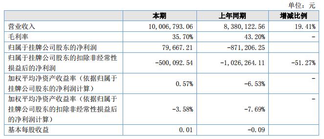公司在報(bào)告期內(nèi)的主營(yíng)業(yè)務(wù)收入為10,006,793.06元,比上年度增長(zhǎng)19.41%;營(yíng)業(yè)成本為6,434,007.95,比上年度增長(zhǎng)35.18%;歸屬于母公司的凈利潤(rùn)為79,667.21元,比上年度增長(zhǎng)109.14%。主要變化的原因是收入增加以及鐵塔項(xiàng)目服務(wù)費(fèi)減少導(dǎo)致的。?